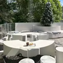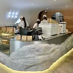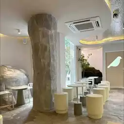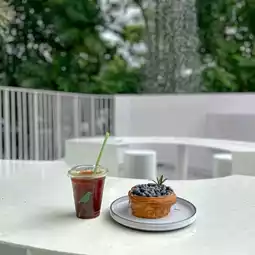 Rainforest Cafe in Charoen Nakhon area with the concept of a rainforest in the city. The shop has a very beautiful design. The interior of the shop is decorated in a soothing white-cream tone. The design is similar to rocks in various places, both on the walls and the counter. The atmosphere is like being in a forest with moss and a glass waterfall wall with water flowing all the time. There is also an outdoor area with a great atmosphere, surrounded by trees. The mood is great. Come in the evening, the light is beautiful.