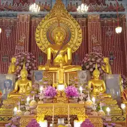 Originally called Wat Klang Na, it has been around since the Ayutthaya period. In front is the shrine of Somdej Phra Bowonratchao Maha Sura Singhanat, who was a general in the early Rattanakosin period.