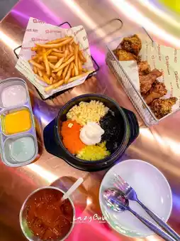 Although there are many customers, the food doesn't take long to arrive. The food comes out so fast that it's confusing. ✨👍 I really like the French fries. The noodles are thin and crispy. I like it. The rice salad is also fun, but the taste is a bit sweet. 😙 My boyfriend really likes the fried chicken. Next time, I want to try the Oppa Cheese Set. 🧀 It looks delicious. Cheese lovers must try it.