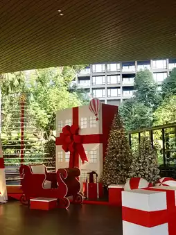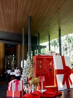 📸 A photo corner with a European feel – a tall Christmas tree, twinkling lights, taking pictures from any angle is beautiful! You can come during the day for a modern and luxurious feel, but at night, it’s super romantic. ✨