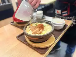 - Kazan (volcanic) ramen is served in a hot stone pot. When you pour the soup into the pot and close the lid for 1 minute, the soup will boil just right.