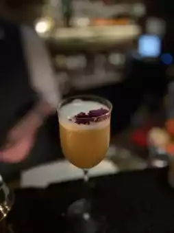 Secret place to try The shop does not have a menu. The bartender will ask what kind of drink you want, what you are thinking or feeling, what you are allergic to or cannot eat. Then you will receive a drink that comes from your own feelings, which is something very special. The drinks are delicious. The bartender is cute, inviting conversation, and describes the drinks that are made in depth. The atmosphere of the shop is also very good. It feels mysterious and great. You can go alone or with your partner. I recommend making a reservation in advance. Most importantly, the shop has unlimited chicken legs. It's delicious. The front of the shop is decorated with magazine covers. It is located at Lat Phrao Intersection, very convenient to travel. If you go on Thursday, there will be live music. The singers are very beautiful. On Fridays, there will be a DJ playing music. The shop closes at 2 am.