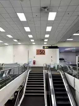 Inside the gate, there are also charging points for phones and other devices for convenient use. There are enough restrooms, no need to walk too far. In addition, the area with windows looking out onto the runway is a good place to sit and watch the planes take off and land. Enjoy while waiting to be called to board the plane in a chill way.
