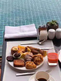 Staying at the hotel also includes MOZU breakfast and the 52nd floor lounge (which offers breakfast, afternoon tea, and unlimited alcoholic drinks). The hotel breakfast is served by the swimming pool and there is also an indoor location for you to choose. There are many types of breakfast, including freshly squeezed juice, noodle area, BBQ area, etc.