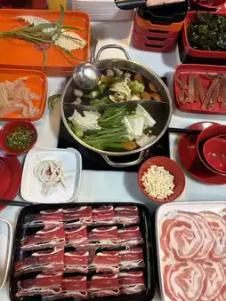 Suki Tee Noi Buffet, Bang Khen branch, has been renovated and is more beautiful than before. It is located inside the Bang Khen housing project. The atmosphere is spacious, the shop is beautifully decorated, and there is more space than before. It is more open and airy than before. There are more seats. The deliciousness and quality are the same. The shop will have promotions all the time. The signature menus are Suki Tee Noi sauce, pork with bamboo, pork wrapped in seaweed, suki in black soup, sliced pork belly, sliced pork neck, Australian beef, pineapple with chili and salt and coke. It is a great value. It is a shop where you can come to socialize with friends, colleagues, alone, or as a couple.