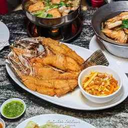 👉Fried Sea Bass with Fish Sauce Served with Mango Salad