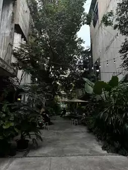 The shop is hidden in a small alley in the GalileOasis project, which is a community that combines cafes, restaurants, hostels and art spaces. The shop is in an old concrete building that has been renovated into a cafe. It combines simple decorations with trees to make it feel cool. There are both indoor/outdoor seating areas and a second floor area. The atmosphere is great for working or reading a book quietly. They serve a variety of desserts and drinks. If you like to sit in a chill shop with delicious coffee, don't miss this shop.