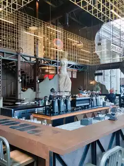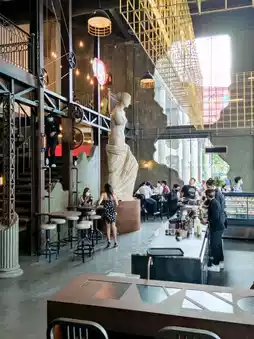 Atmosphere: The cafe is grand and impressive, with unique statues of both men and women. The ambiance inside is very pleasant and luxurious. The interior is spacious and comfortable with a dark color scheme. The drinks are strong and the cakes are delicious with great texture. The cakes are beautifully designed with both elegant and artistic styles. I wanted to try several pieces, but one piece was enough as the cakes are quite large. There are many photo spots, including the bar counter, beer counter, statue corner, and sofas. The cafe has a second floor and plenty of parking space.