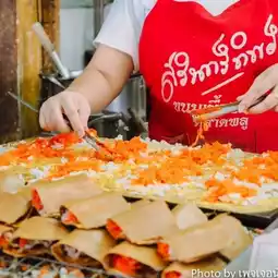 Savour famous street food such as the 100-year-old Khanom Bueang Boran or stewed pork noodles