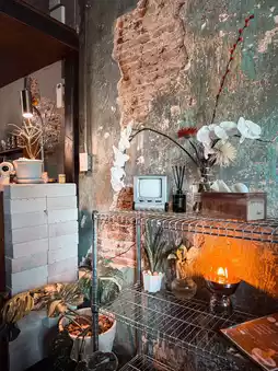 Hom Fung is located near Wat Suthat (Giant Swing). The ground floor is a noodle shop where you can order just noodles. However, if you want to sit upstairs and enjoy the atmosphere, you need to order a drink from the café. There are 3 tables upstairs, and the stairs are quite steep, so be careful when walking. 🥰