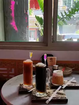 It serves a mix of Chinese-Thai fusion food, specialty coffee, and craft cocktails, making it a versatile hangout spot for different moods.