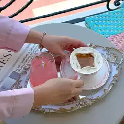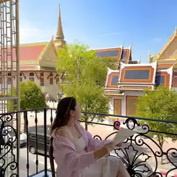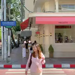 PAULETTE BKK 🎀 A pastel pink shop decorated to feel like you've been transported to Paris. It opened to welcome the year 2025 with a bang. The highlight corner is the balcony with a view of Wat Ratchabophit. It's amazing. Don't miss it! The menu has drinks, desserts, and ice cream that all look delicious.
