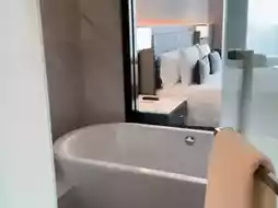 This time we stayed in a Deluxe room: the basic room type is 28 square meters, decorated in wooden tones, with a soft mattress, and good service. You can download the hotel app to borrow related items from the hotel such as mobile phone charging cables, yoga mats, etc.