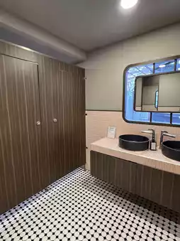 The ground floor area is more crowded, suitable for meeting and talking. The upper floor area is quieter, suitable for working, reading a book. There is an outdoor area at the back with a beautiful garden and clean bathrooms. The shop has a motorcycle parking lot in front, but no car parking. The train is the most convenient. Walk for about 3 minutes to get there.