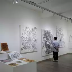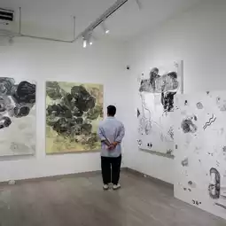 "5,475 DAYS" presents artworks created during the period from 2005 to 2023, reflecting her determination in the artist's path Through various techniques and processes of creating works From numerous human paintings created from sketch lines To explore the power of ink, color and smoke, conveying the ever-changing state of mind.