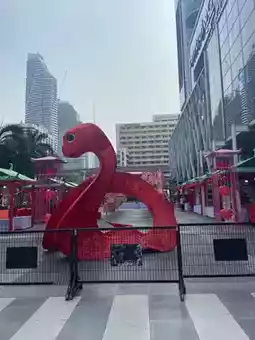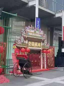 It's like they've brought Yaowarat here. There's a food zone and a zone that's like a replica of a shrine. There are deities for us to worship and ask for blessings.