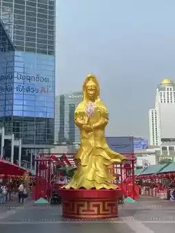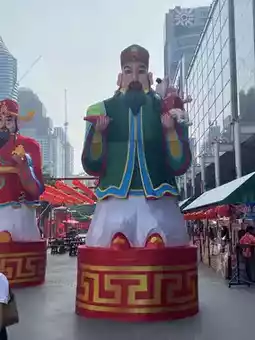 The atmosphere is similar to Yaowarat or China. The only thing missing is the smell of incense because there doesn't seem to be any incense here. But in terms of beliefs, it's definitely second to none.