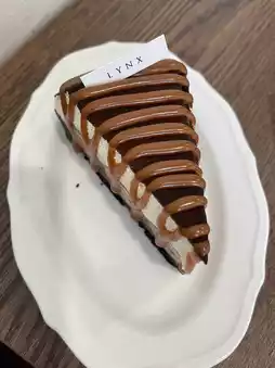 Today, we tried LYNX Cafe. We ate Banoffee Pie and Strawberry Milk. It tasted really good.