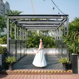 The rooftop is well-designed, including a swimming pool with a cool city view, a bar corner for us to chill, and a green area for yoga. The lotus pond seats allow us to relax, with a complete 𝗙𝗮𝗰𝗶𝗹𝗶𝘁𝗶𝗲𝘀. What I like the most is the hotel's large green space.