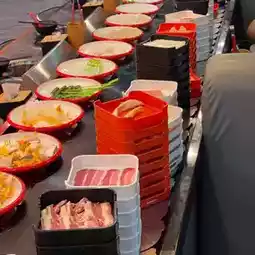 Food will come on the conveyor belt, you can choose as you like