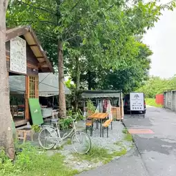 A cafe for art lovers to show off their stuff. The shop is a bit mysterious, you have to go into a small alley. There is parking inside.