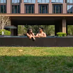 Another must-see spot is the swimming pool in the middle of the hotel, which is very large and 40 meters long. It is an outdoor pool. There are many day beds around it and a pool bar.