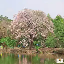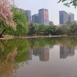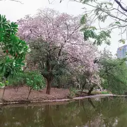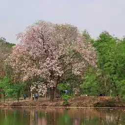 ðŋðļâēïļWachirabenchatat Park or Railway Park is a large public park in the heart of Bangkok where you can walk and see the pink Trumpet Tree flowers that are in full bloom. They are blooming continuously throughout the park. It takes about 2 weeks before the flowers fall off.