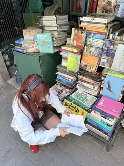 At the Chatuchak Weekend Market in Bangkok, there are several interesting second-hand bookstores for book lovers and collectors.