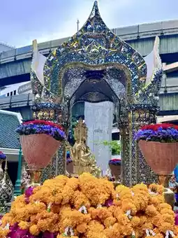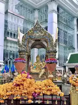 In the early morning streets of Bangkok, amidst the hustle and bustle, lies a serene place—the Erawan Shrine. Approaching the resplendent statue, one can feel the solemn atmosphere permeating the air. Nestled in a bustling commercial district, the Erawan Shrine exudes a tranquil power, drawing countless devotees and tourists to worship and pray.