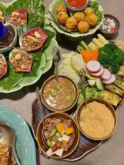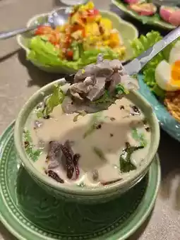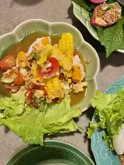 A Thai restaurant in the Rama 2 area with a wide variety of menus to choose from. Many of the menus are Thai dishes that we don't know at all, and some are hard to find. The taste of the food is excellent, not disappointing at all. Each dish is served with great care. The plates are decorated very appetizingly. The atmosphere of the restaurant gives a warm feeling. There are both indoor and outdoor seating areas.