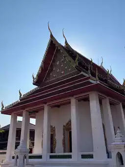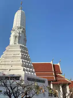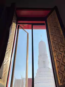 Famous royal temple on the Chao Phraya River in downtown Bangkok, Thailand: Wat Nang Ratchaworawihan, suitable for taking photos 📸 Check-in and meditation