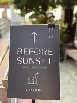 Before Sunset is a cafe in the Tha Tien area. It is a cafe by the river with a view of Wat Arun. If you go in the evening, the light is good and the light is very beautiful. To buy ice cream here, you have to buy it at the front of the shop first and then go up to the 2nd floor of the shop to see the view. Sit and relax, the atmosphere is very good. And their ice cream is very delicious, just right. Eating ice cream with a good atmosphere, the feeling is great. The cafe is beautiful, the light is good, take beautiful pictures, take pictures from many angles. Content lovers must not miss it. The shop is air-conditioned. The shop is located in Soi Pratu Nok Yung, Phra Borom Maha Ratchawang Subdistrict, Phra Nakhon District, Bangkok. Just follow the map. The shop does not have a parking lot. Plus, there are many cafes in this area.