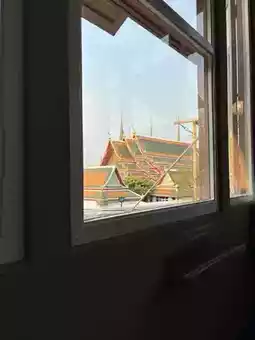 After Sunrise is a newly opened cafe. The highlight of the shop is the view of Wat Pho, Tha Tien area. It is a shop that serves suroses with delicious ice cream. There are many flavors of ice cream to choose from. You can also enjoy the view and the nice atmosphere. The shop is located on the 2nd floor of Chetuphon Gate, Pratu Nok Yung Alley, Phra Borom Maha Ratchawang Subdistrict, Phra Nakhon District, Bangkok. It is a shop in the same group as Before Sunset. It is very cute. You can take beautiful pictures. The light is good. The atmosphere is very chill.