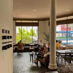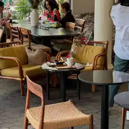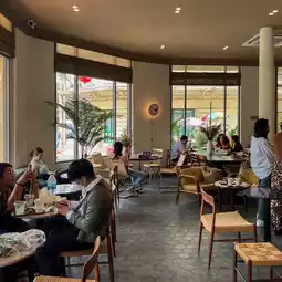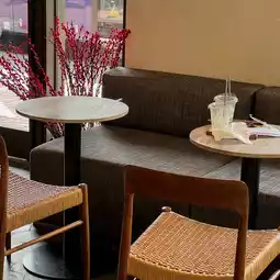 A stylish cafe. Come and soak in the relaxing atmosphere full of peace. Inside the shop, there is also a prominent image of a hand releasing a large balloon. It should be the highlight of the shop. There are many photo spots.
