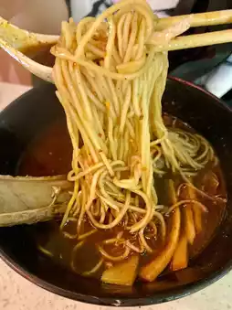 🍜 Ramen: The price is a bit high in exchange for chewy noodles, rich soup, salty, oily and spicy, rich pork bones in pieces.