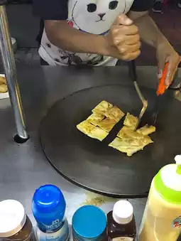 After dinner, I stopped by Khaosan Road to get a foot massage and explore the night market. It was as crowded and noisy as people say, but it was still fun to explore! A photo with the famous McDonald's guy is a must~~ The street roti was also great value and delicious! Before taking a Grab to my accommodation, I stopped by Kundaeng Kuai Chap Yuan, famous for its sticky noodles, for a bowl of noodles. If you're ever in Bangkok, I highly recommend stopping by!