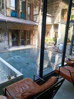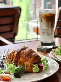#CafeBundle Ground Coffee ☕️⛅️🌳 is located in the hidden yard. It is a cafe that I really like. The vibes are good. It is suitable for sitting and drinking coffee, working, and chilling out. The atmosphere is good. The Loft style is vintage. There are both air-conditioned and outdoor seats. The atmosphere is shady. The drinks are both espresso bar and drip coffee. The food here is served as "All Day Breakfast". The menu that we ordered that day was "Ground Toast". Toast bread with two eggs (with 1 more hidden inside), ham and mozzarella cheese, and fragrant truffle sauce. It is a really good menu to start a new day.