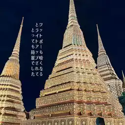 This time, I will introduce two temples in Bangkok with beautiful night views! Both are famous temples, so many people probably already know about them, but they are called Wat Arun and Wat Pho, and they are lit up at night, making them even more mysterious. Wat Arun closes at night, so it is recommended to see it from the opposite bank. 📍Wat Pho Pier: PFVR+QGM, Maha Rat Rd, Phra Borom Maha Ratchawang, Phra Nakhon, Bangkok 10200 ThailandThis is a recommended spot where you can see the night view for free! Please stop by📍Wat Pho: 2 Sanam Chai Rd, Phra Borom Maha Ratchawang, Phra Nakhon, Bangkok 10200 ThailandThis temple also closes at night, but if you go right before the event, there are few people and you can avoid the crowds and see this beautiful pagoda. Please go and check it out ⚠️It gets pitch black around the temple after dark, so I recommend calling a Grab taxi in advance for your return trip, and knowing where the temple exit is as it is complicated. ⚠️You can't enter the temple without a sleeveless top, so I recommend bringing a woven garment such as a stole! ——————————————————————————————