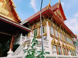Bangkok, Thailand is a world-famous tourist resort city. Every day, thousands of tourists come to Bangkok for sightseeing and vacation. Bangkok has many historical sites and royal temple attractions. This time we will introduce a landmark temple attraction located on the Chao Phraya River in the center of Bangkok: Wat Phra That Pratunam. No tickets required, free to visit and take photos📸. You need to take off your shoes to enter the temple. Wat Phra That Pratunam is a very famous landmark temple attraction in Bangkok. Its iconic building is the golden Buddha. Unfortunately, the Buddha was under repair when I went there. This is definitely a great spot for taking photos. The other buildings in the temple are also tall, majestic and magnificent. Also very suitable for taking pictures📸. The temple is solemn, quiet and peaceful, very suitable for a leisurely visit and taking photos📸. There are public toilets and chairs for tourists to rest in the temple.