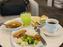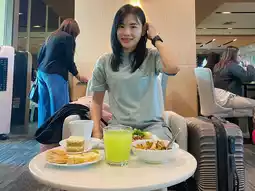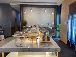 Here, both food and drinks are served as a buffet. There are many choices, both savory and sweet, fruits. The beverage zone has tea, coffee and alcoholic drinks that can be refilled as much as you want. Other amenities include bathrooms and showers. Free Wi-Fi is available. It is suitable for relaxing before boarding the plane. The atmosphere is quiet and not crowded. Come and use the service.