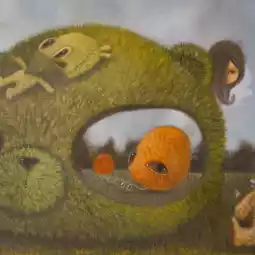 The artist was inspired by his own childhood memories, which were filled with happiness and a sense of security from his favorite toys, especially the teddy bear, which was like a close friend and a representative of love and warmth on a lonely day.