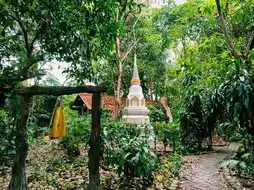 Bangkok, Thailand is a world-famous tourist resort city. Every day, thousands of tourists come here for sightseeing and vacation. There are many historical sites and royal temple attractions in Bangkok. This time, we will introduce a royal temple attraction located on the banks of the Chao Phraya River in the center of Bangkok: Wat Kamphaeng Bangchak วัดกำแพงบางจาก. Free entry to visit and take photos📸, no need to buy tickets. You need to take off your shoes when entering the main building of the temple. The temple is located close to the shipping terminal and bus station, and transportation is very convenient. The temple was built during the Ayutthaya period in the early Siamese dynasty. After hundreds of years, it is a veritable historical monument temple in Bangkok. It is also a third-level royal temple. The characteristic of the temple attraction is that the entire temple is arranged like a Thai garden. Many tropical green plants and flowers are planted in the temple, which is lush and green and very beautiful. There are also some exquisitely carved stone towers in the garden. Taking photos 📸 will definitely be a hit. There are not many tourists in the temple. It is quiet and peaceful, suitable for a person to come here to meditate. There are public toilets and chairs for tourists to rest in the temple.