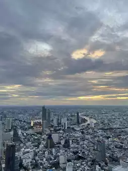 Standing on the glass observation deck, the entire city of Bangkok unfolds like a map, with the winding Chao Phraya River resembling a silver ribbon weaving between bustling and tranquil areas. The transparent floor beneath your feet takes your breath away, as if the next step could lead you into the vast sky. At dusk, the city lights up, and the myriad lights reflect against the night sky, making MahaNakhon Tower appear like a shining beacon, embodying the energy and creativity of modern Bangkok.