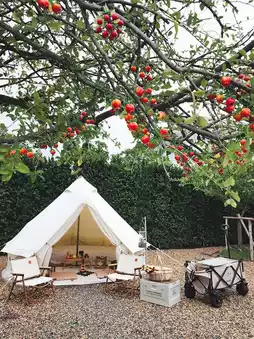 Take a tour of a cafe with a flower garden and a cute glass dome.