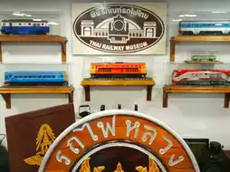 The Thai Railway Museum was established since 2015 to collect history and various stories about Thai trains for those who are interested to study. The area is divided into 2 floors. The lower floor is full of various collectibles related to trains, whether it is equipment used in the past in railway operations, old train tickets packed in the car, various model trains, uniforms of the Royal Railway Department in the past, kitchenware used in the food car, white ceramic utensils with cracked ivory decorated with Garuda, including brassware. Because before 1951, the State Railway of Thailand had the status of the Royal Railway Department with Garuda as a symbol, convenient equipment And convenient route, signs on the side of the car indicating the origin and destination, etc. 🚂