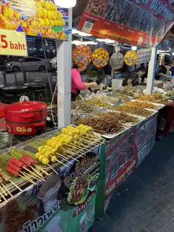 Lastly, let's talk about the convenience. The hotel is a five-minute walk from On Nut station, with a Lotus supermarket, 7-11, cafes, and KFC nearby. It's also close to a street full of massage parlors. The night markets on both sides of the station are a highlight, offering various snacks and fruits. In the late evening, you can grab some skewers, buy some snacks, and enjoy a beer in the outdoor seating area, savoring the cool Bangkok night before walking back to the hotel for a good night's sleep.