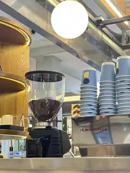 A cafe that mainly sells donuts, and also has coffee, tea, etc.