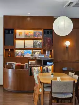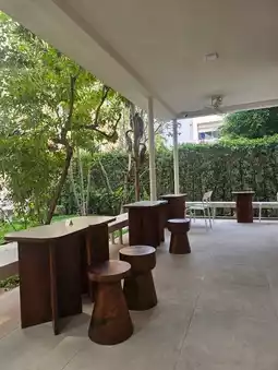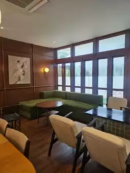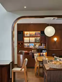 The seating area inside the cafe includes both indoor and outdoor zones. It's very quiet and peaceful. In the morning, the light coming through the windows is perfect for taking photos. Highly recommend visiting in the morning.