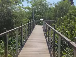 The learning center for the forest in the city, which PTT built, is not very big but is shady. There are places to sit and relax, a long wooden bridge that goes around to see a high angle view, and a spiral staircase to the highest point with a 360-degree view. It is considered well-made.