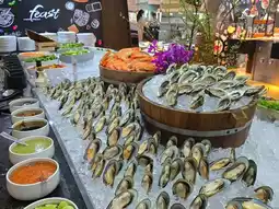 💞Reason to Recommend: Only Friday to Sunday! Weekend Dinner Seafood BBQ + Free flow soft drinks and water. The buffet includes various BBQ seafood, lamb, Wagyu steaks, New Zealand mussels, and large squids. There are also special truffle dishes crafted by the chef, with various sauces and sides to complement the truffles. Additionally, there is a cheese selection, a variety of Thai dishes, fresh oysters from France, salmon sashimi, and tuna. The buffet also includes a wide range of desserts, a chocolate bar, ice cream, and homemade Thai sweets. The staff is very attentive and the food is delicious.